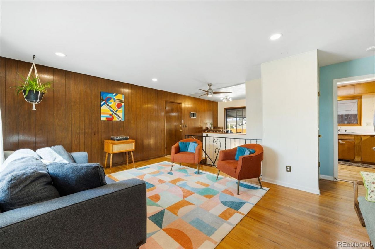 Cute mid-century brick home in fantastic condition with many new systems for modern living and no HOA! This 4-bedroom, 2-bath residence offers a bright main level with an iconic picture window and original wood floors. The open-concept layout creates a fun indoor-outdoor lifestyle, the kitchen features generous storage, wood floors, an adjacent breakfast nook, and direct access to a large covered patio and private, shaded backyard ?ideal for entertaining. The main floor primary bedroom is filled with natural light and includes an oversized closet and wood floors. The fully remodeled main floor bath honors the homes style with updated tile and water-saving features. The two additional main floor bedrooms offer convenience. The newly finished basement expands living space with a mid-century-inspired wet bar, stone accent wall, luxury vinyl plank flooring, an additional bedroom, full bath, dedicated work-from-home flexibility, and ample storage. Enjoy a large privacy fenced backyard with a covered patio and brick grill ready for future fireplace conversion. Major upgrades include energy-efficient central A/C, updated electrical with new panels, Rachio front and rear sprinkler system, hail-resistant roof, smart thermostat, updated windows, video doorbell, radon mitigation is already in, and an exterior Chargepoint Electric Vehicle charger. Conveniently located near Belmar shopping in a walkable neighborhood with nearby dining, parks, and schools.