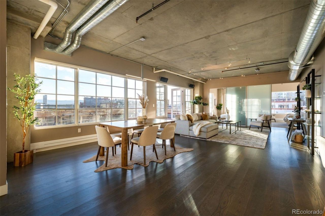 Outdoor Living In the City might be unexpected but here it is! Experience a rare offering at Palace Lofts?a true loft residence combining scale, architectural character, and exceptional outdoor living in the heart of LoDo. Nearly 1,900 square feet of interior space is complemented by an expansive ~765 square foot private terrace, creating a seamless indoor-outdoor lifestyle rarely found downtown.The home was thoughtfully reimagined with high-end, design-forward finishes, including solid-core walnut doors, white oak plank flooring, Level 5 smooth walls, imported Italian porcelain, and a striking Eramosa marble feature wall. A custom moving wall system allows flexibility between open and private living.The kitchen features European cabinetry and KitchenAid appliances, including induction cooking and convection systems. Open living and dining areas are anchored by industrial windows and curated lighting, ideal for both everyday living and entertaining.The primary suite offers a spacious walk-in closet and spa-inspired bath, while a secondary bedroom and full bath provide flexibility for guests or office use.What sets this residence apart is the level of infrastructure investment, including updated electrical, plumbing, and HVAC systems, along with integrated audio and smart-enabled climate control for modern, efficient living. Neutral wiring and distributed low-voltage cabling further support future home automation.Extending the living space outdoors, the terrace is a true standout?finished with polished concrete and designed for year-round enjoyment with gas, audio, and sweeping mountain views from Pikes Peak to Longs Peak. Two deeded parking spaces and a nearby storage unit add everyday convenience.Residents enjoy concierge service, fitness center, rooftop deck, and deeded parking, all moments from Union Station, Coors Field, and LoDo dining.