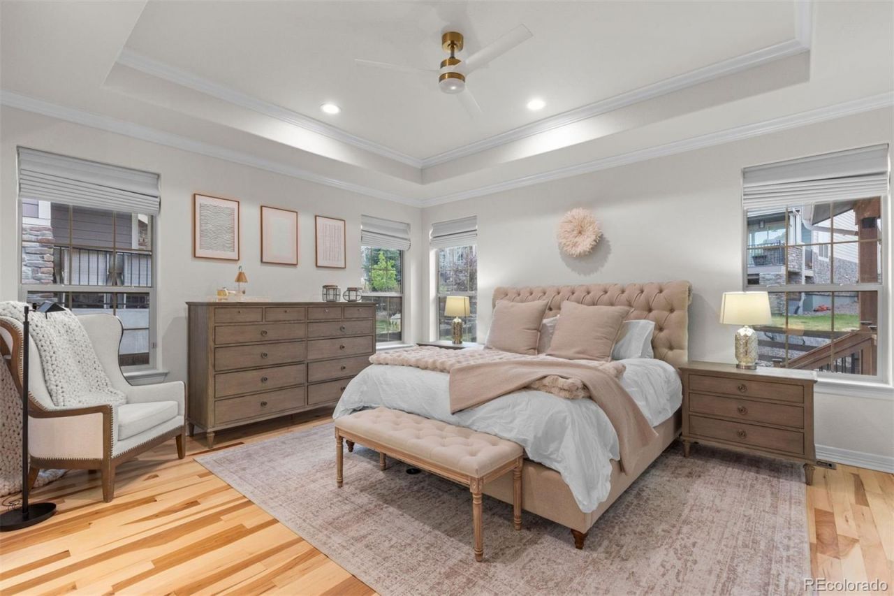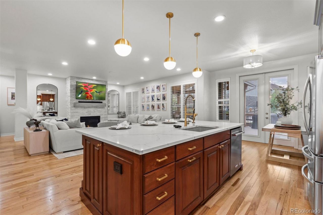 Refined, reimagined, and ready, 21934 E. Idyllwilde Drive in Parkers beloved Idyllwilde subdivision is a stunning Toll Brothers five bedroom, 3,600+ sq. ft. ranch where every detail has been thoughtfully considered and impeccably executed. Rich hickory hardwoods and plantation shutters flow throughout the main level, complemented by custom cabinetry, designer lighting, and a striking reimagined stone fireplace that anchors the space in warmth and refined elegance. The kitchen features rich cherry cabinetry, gleaming quartz countertops, and a stylish backsplash, elevated by soft-close drawers and elegant gold pulls, while the adjacent dining area with custom built-ins creates an inviting setting for gatherings. A main-floor office offers flexibility as a potential fifth bedroom. The fully remodeled primary suite is a private sanctuary, featuring a luxurious standalone soaking tub, beautifully appointed finishes, and a custom-designed closet system that blends elegance with everyday practicality. The finished basement expands your living space with a wet bar, two additional bedrooms, and a full bathroom?ideal for entertaining or extended living. Step outside to fresh exterior paint, a structurally engineered deck with a built-in grill, and a backyard with a raised garden bed?perfect for Colorado living. Idyllwilde offers a vibrant lifestyle with a pool, fitness center, parks, and miles of trails, complemented by the nearby charm of FIKA Coffee House. Situated in the top-rated Douglas County School District and just minutes from Downtown Parker, this is where your next chapter begins.