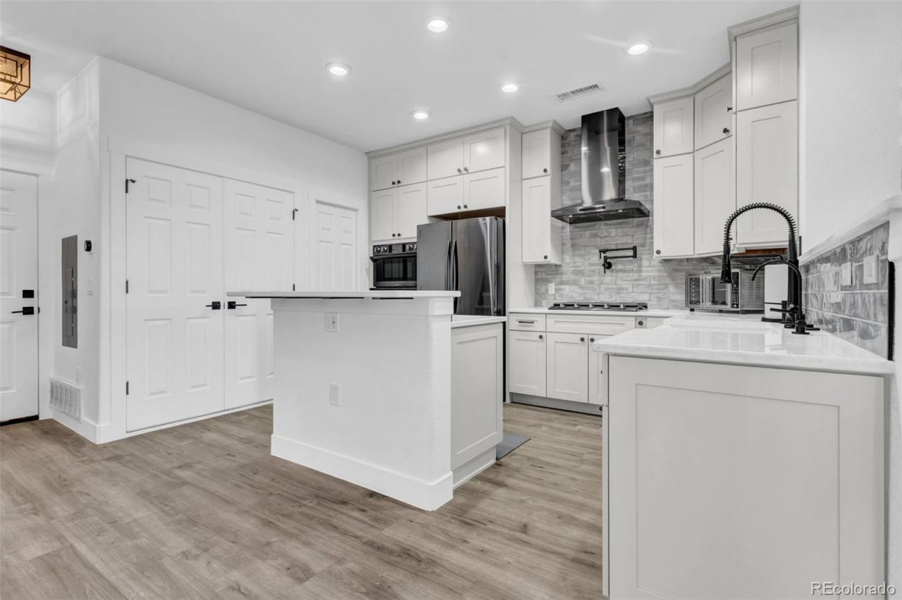 **HOA DUES PAID THRU 2026** This is what model home living actually looks like... fully remodeled from top to bottom with nothing left to do. Designed with intention and finished with a modern eye, this townhome offers the perfect blend of modern style and everyday functionality in a highly desirable Southeast Aurora location. With a bright, open layout and designer finishes throughout, every space has been thoughtfully updated for effortless living and entertaining.The main level features durable LVP flooring, recessed lighting, and a stunning stone-surround gas fireplace that anchors the inviting living area. The kitchen is a true showpiece with white cabinetry, quartz countertops, tile backsplash, stainless steel appliances including double ovens, and a large center island with seating and additional storage. The dining area is filled with natural light and opens directly to a private patio, creating seamless indoor-outdoor flow.Upstairs, the spacious primary suite impresses with vaulted ceilings and a beautifully renovated five-piece bath featuring dual vanities, a soaking tub, and a separate glass-enclosed shower with designer tile. Two additional bedrooms, a full bathroom, and convenient upper-level laundry complete the second floor.Additional highlights include a main-level powder bath, attached two-car garage, and neutral finishes throughout that make this home truly turnkey. Just minutes from Aurora Reservoir and Southlands Mall for shopping and dining. Zoned for Cherokee Trail High School, one of the areas most sought-after high schools. With easy access to Parker Road and I-225, this location offers both lifestyle and convenience.Homes with this level of finish, layout, and location dont come along often.